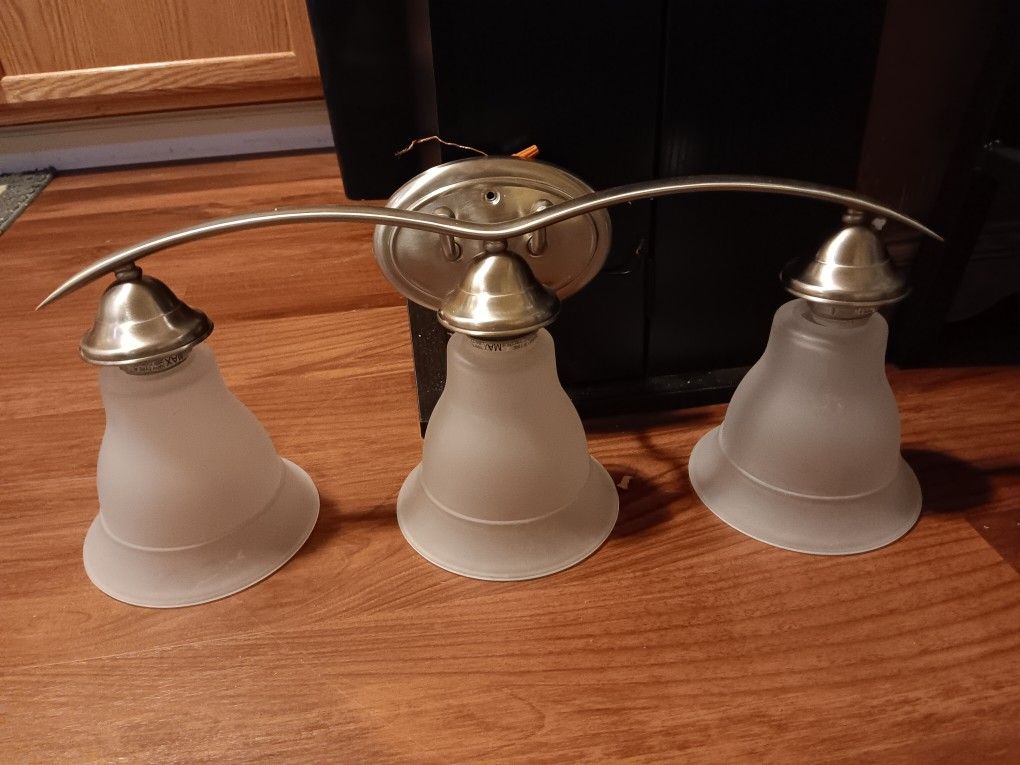 Brushed nickel in color with frosted glass