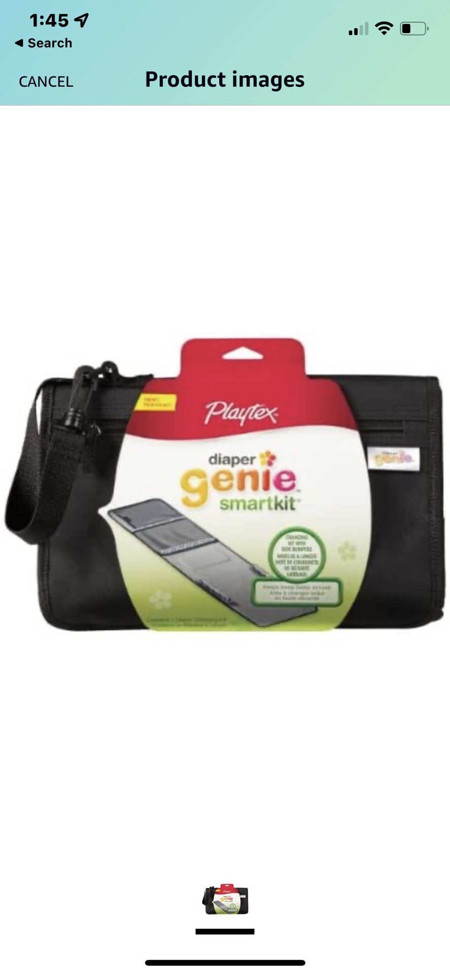 Diaper Genie SmartKit On-The-Go Diaper Changing Kit Say goodbye to diapering your baby on dirty changing tables, grass or the backseat of your car with the Diaper Genie SmartKit. With the Diaper Genie SmartKit you will be prepared when and where a diapering situation hits. Keep baby comfortable with the cushion changing pad with head pillow Features: Cushioned changing pad with head pillow Side bumpers to help keep baby secure Pockets that hold up to 4 large diapers and other essentials Waterproof pad for easy cleaning Includes wipes case Clipping strap for easy carrying or attaching to stroller Dimensions : 12 x 2 x 8 inches