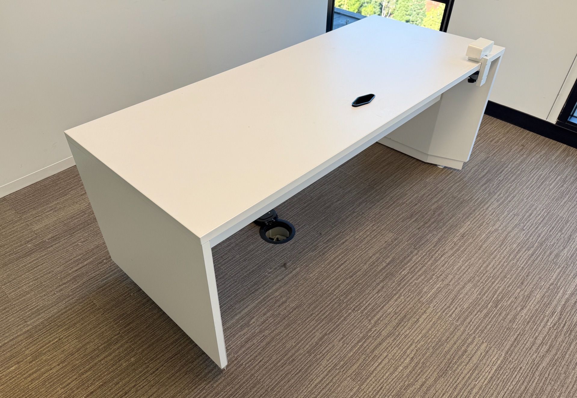 We have these 7’x30” LINAK white height-adjustable desk in excellent condition. Clean, modern design with smooth electric sit-stand adjustment. Sturdy frame, quiet motor, and spacious surface ideal for office or home workspace. Reliable LINAK system, ready to use.