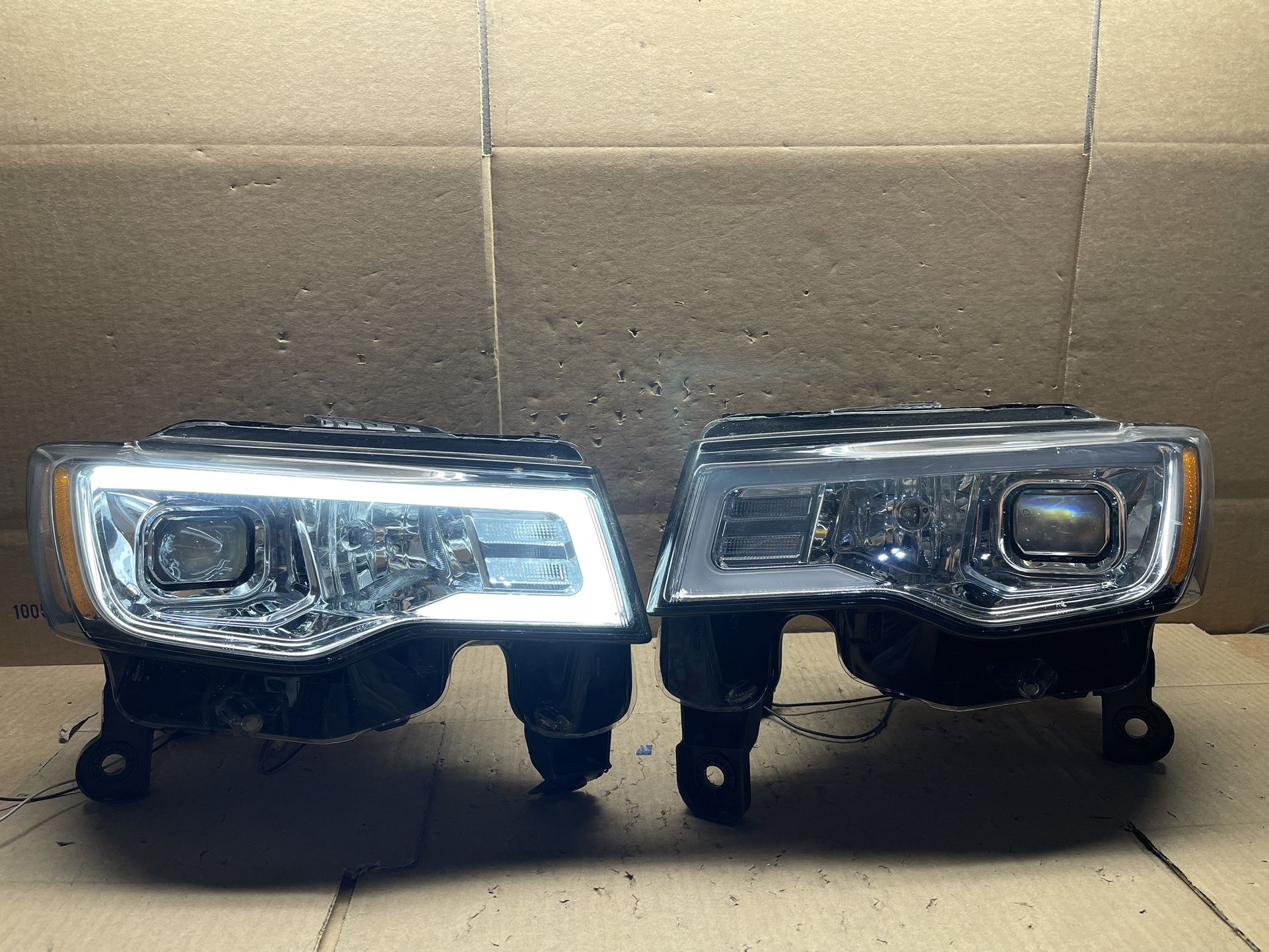 #OH83 2017-2022 Jeep Grand Cherokee Chrome Switchback LED Halogen Headlight Pair