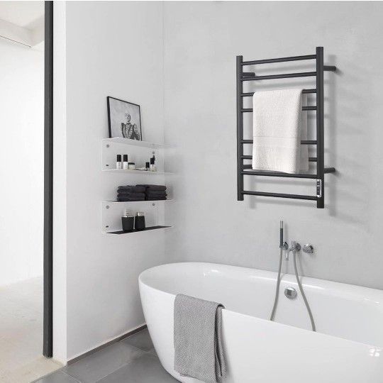(New in Box) SHARNDY 32"x24" Towel Warmer Black For Bathroom Wall Mounted Bath Towel Heater Electric Heated Towel Rack Stainless Steel Round 7 Bars Pl