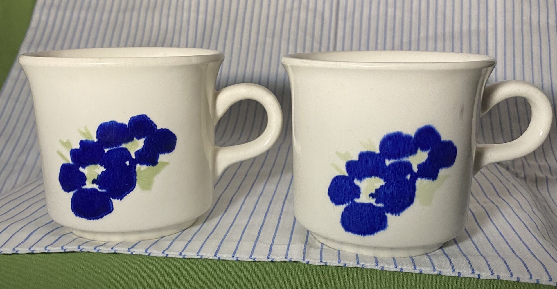 2 Vintage Unbranded 3" Blue Floral on Bone/Beige Coffee 2 Mugs made in USA Charming Set