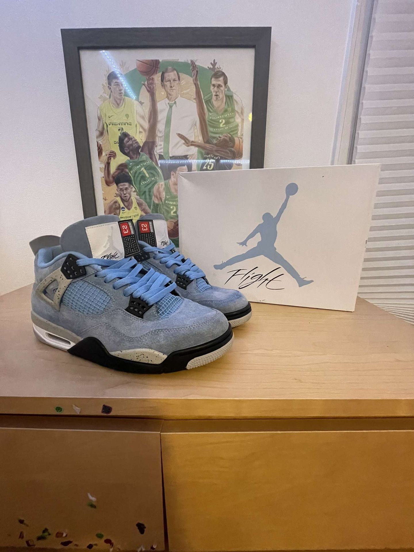 Jordan 4 UNC Size 11. Grab these for a great price and awesome back to school shoe! Taking offers! These are pre owned, in good condition. Lighting makes the suede look awful, but they are way better in person. Hmu taking any offers, no trades. OG All!!