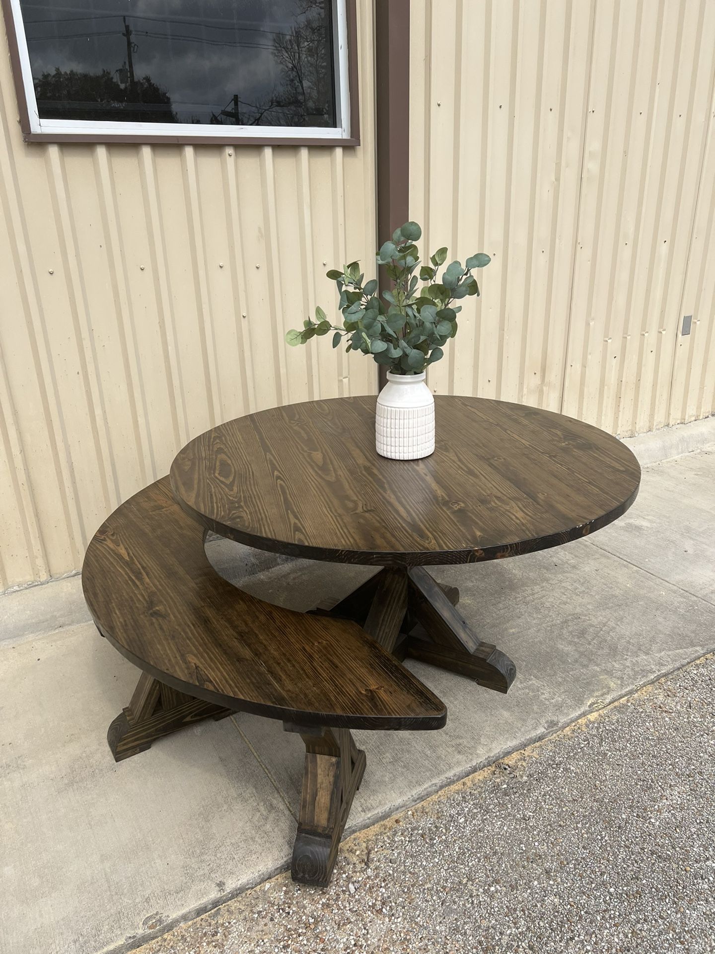 Custom Round Dining Table Modern Rustic Set Bench Restoration Hardware Breakfast Nook Table Solid Wood Custom Handcrafted Counter Bar