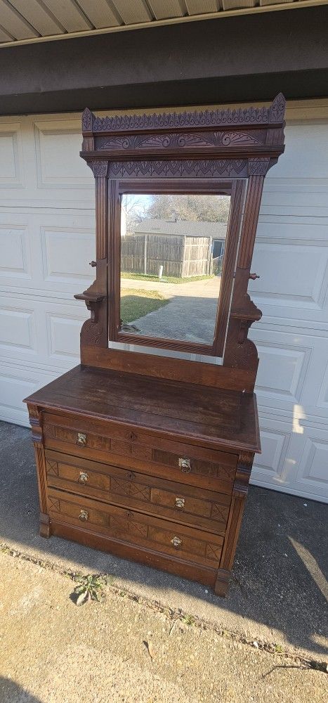 Antique Victorian Dresser w/ Mirror – Solid Wood