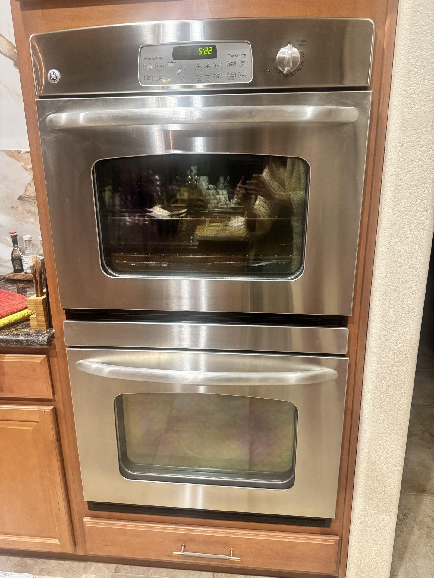 Working GE Double Electri Ovens 28½″ X 51 13/16 X 23 ½″ model JT P35S P1SS Lower Oven Was Almost Never Used. Light In Upper Oven Is Not Working