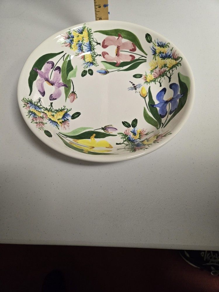 Antique Ceramic Hand Painted Serving Bowl