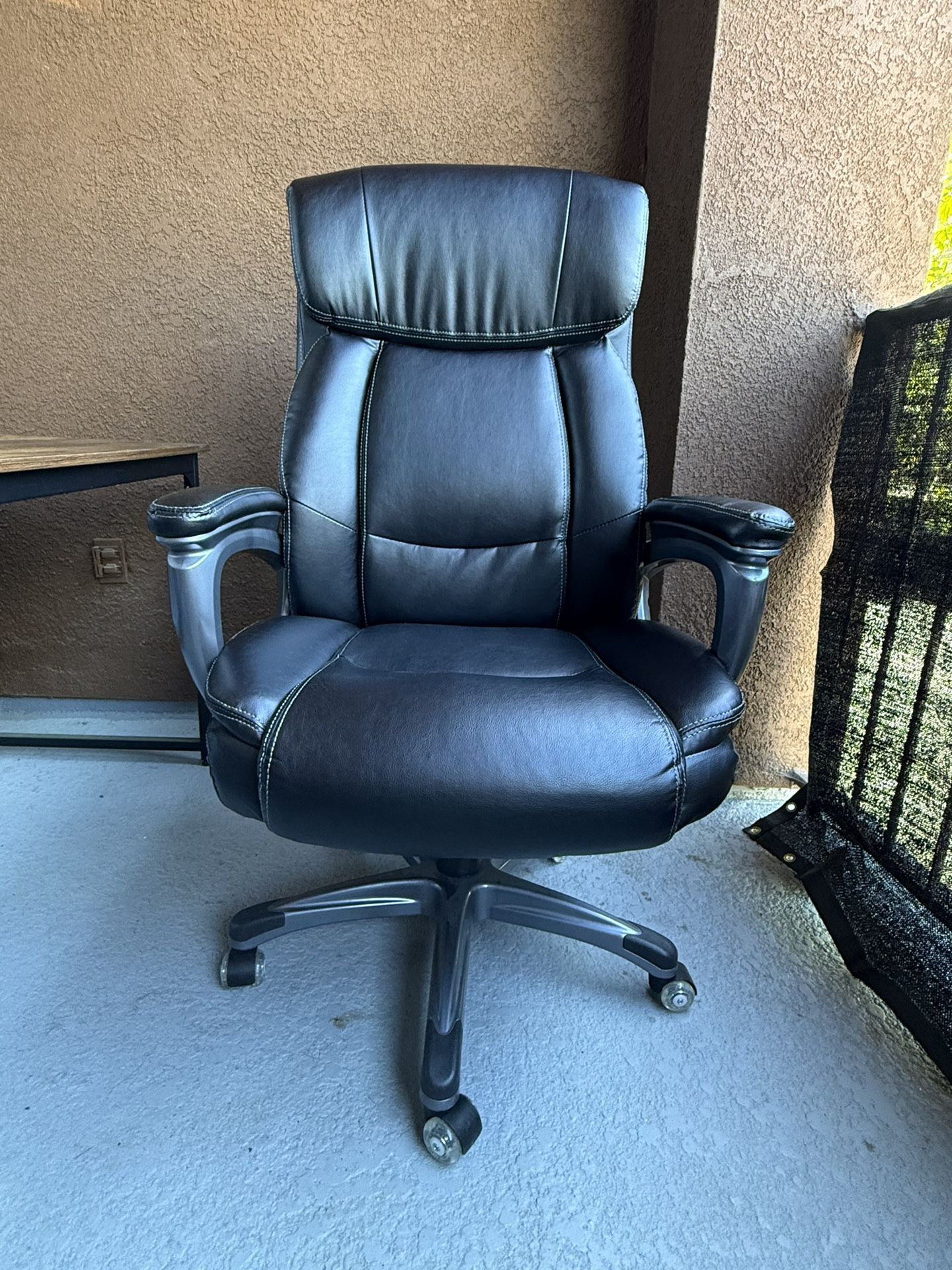 Comfortable executive office chair with thick padding and high back support. Features: • Adjustable height • Rolling wheels • Comfortable armrests • Great for home office or gaming Chair is in good used condition and works perfectly. Pickup in San Diego. Also selling a computer desk if interested in both.