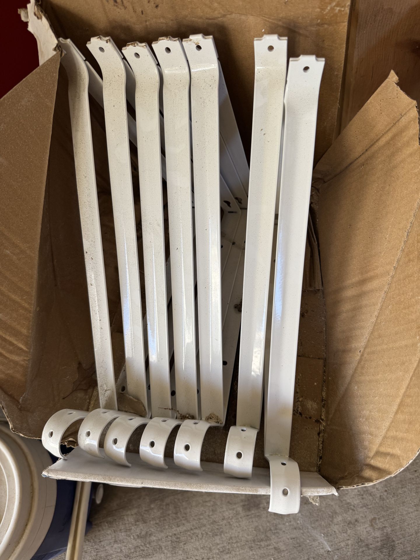Selling (7) white shelf&rod brackets In bundle $20 for all of them. Se Vende (7) Angulos para shelf $20 por todo. No menos
