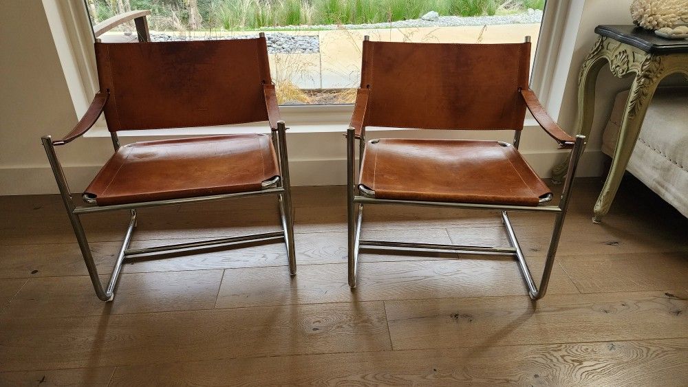 1970's "Amiral" Karin Mobring armchair from IKEA, some stains marks which could use a leather treatment for restoration, 1 arm piece needs to be re-sued & 1 back base has some seams coming un-done, small restoration would have them in top shape, mcm mid century modern boundless low chairs. Pick up on camano island or scheduled delivery.