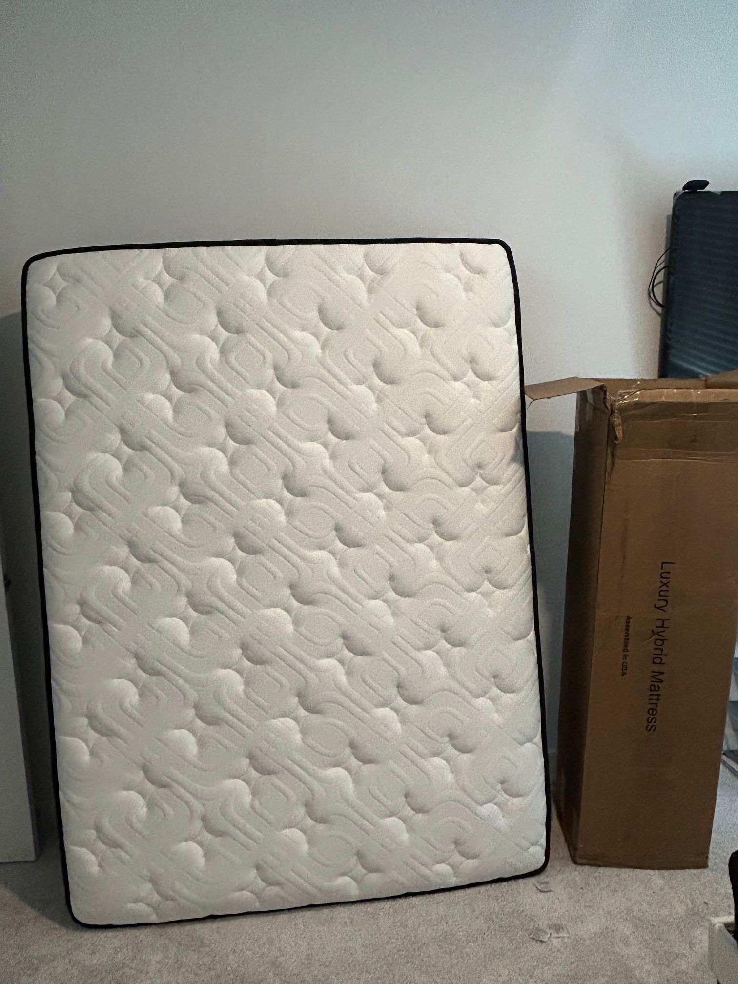 Brand-new full size mattress — $350 I bought this mattress at Living Spaces, it just arrived and I realized I ordered the wrong size because my bed is a queen. Since it was on sale, I can’t return it and exchange it for a larger size. I’m open to offers.