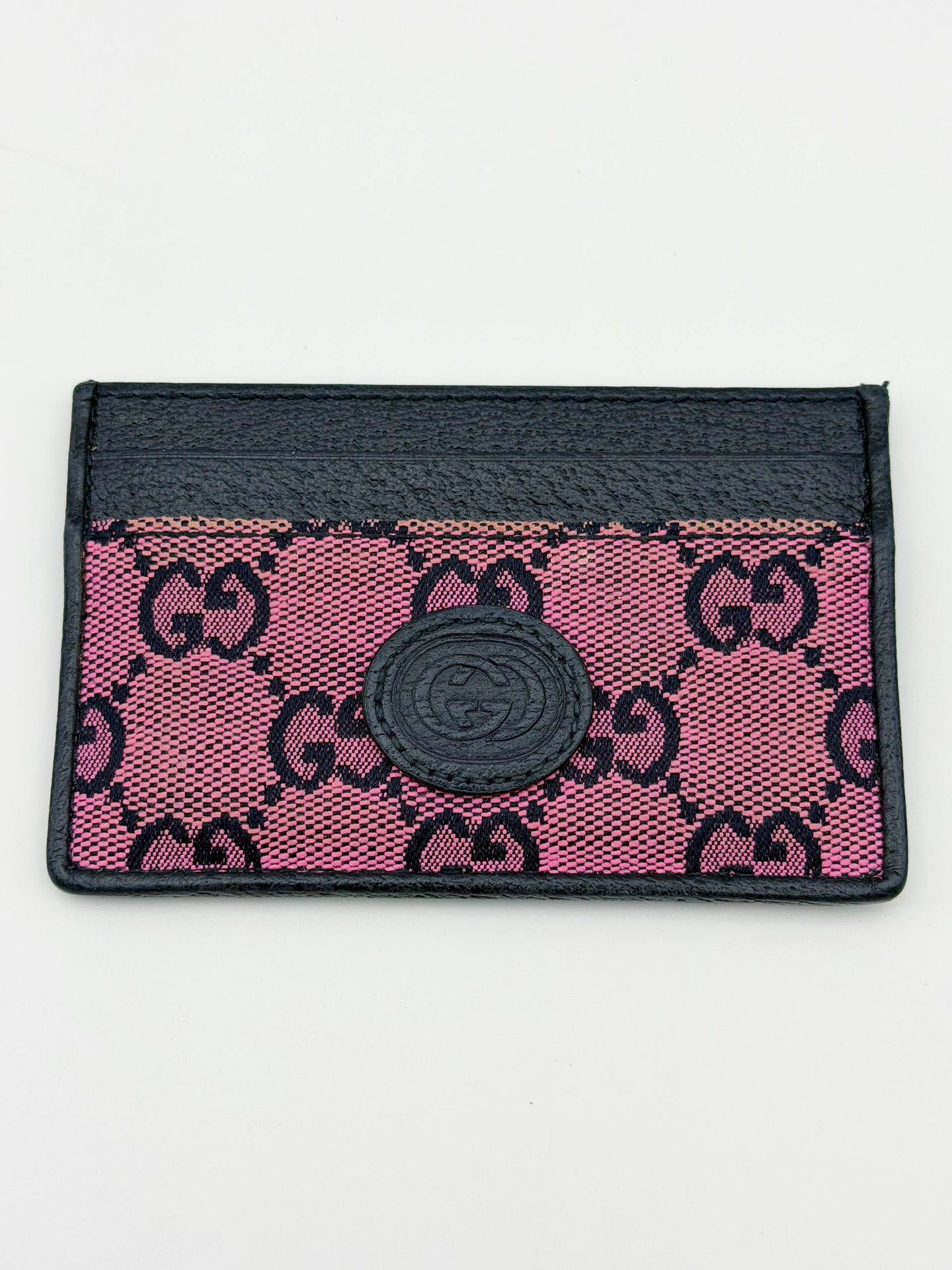 This beautiful Gucci card holder is made of pink fabric with dark blue leather details. Wallet is in very good condition. Only have some minor scratches inside on leather as pictured. Overall holder in great shape. Size: W 4.5 x H 3 x D 0.25 inches. This piece is from the Gucci GG collection by Gucci, featuring a vibrant pink GG monogram canvas that reflects the House’s playful, retro-inspired aesthetic, blending bold color with iconic heritage detailing for a statement-making yet timeless design. Wallet comes with original box, multicolor dust bag and 2 booklets. What you see is what you get. This unique card holder will be a great addition to your collection and will highlight the sophistication of your style. The best choice for you! We buy Hermes, Chanel, LV, Dior, Gucci, YSL. Do layaway in vipawn Boca Raton 🔥💎💸