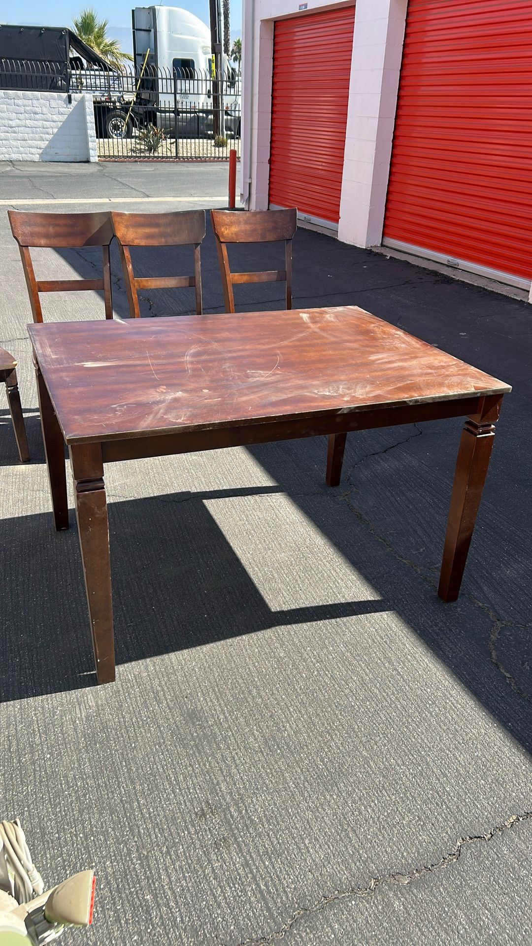 Woden table in decent condition with four chairs. Been in storage for a few months so needs some love. Must pick up at Redlands storage unit