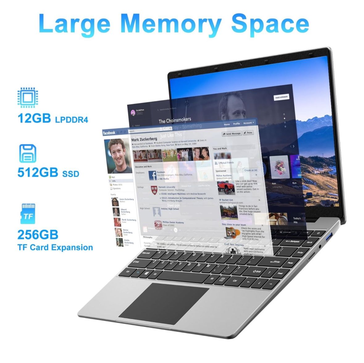 14 inch 12GB LPDDR4 RAM 512GB SSD, Intel Celeron Quad-Core Processor, Windows 11 Computer with FHD IPS Screen, UHD Graphics 600, 5G+2.4G WiFi, Dual Speakers, USB3.0, Webcam, Slim.