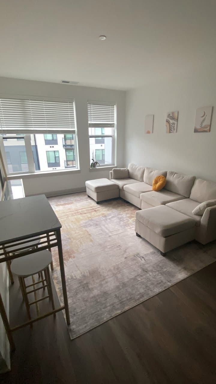 Beige Modular Sofa/ Couch/ sectional has under seat storage, 6 seats that can be positioned to your preference (see photos), and is like sitting on a pillow. Size/Dimensions are in the photos. New. Selling due to needing a smaller sofa. Each seat (6) has storage. Pick up only.