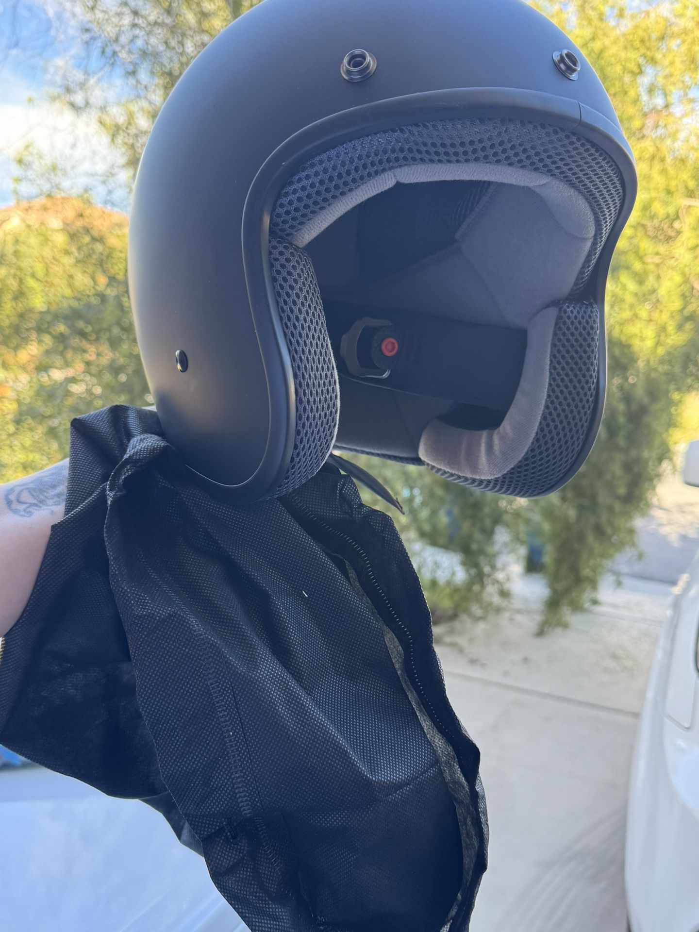 Medium TCMT Adult Matte Black 3/4 Open Face DOT Motorcycle Vintage Retro Helmet