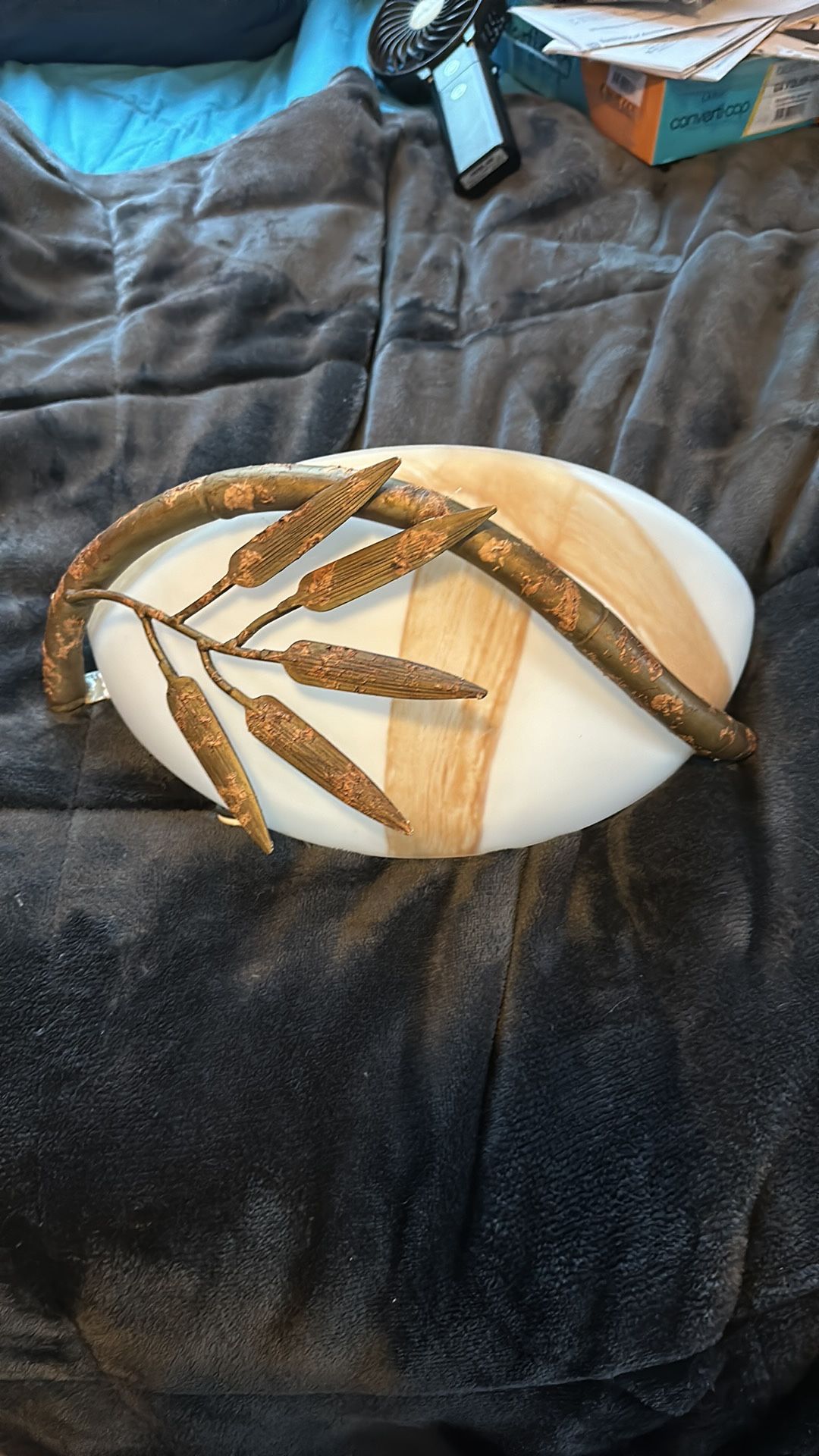 Kalco hardwired light wall sconce. Tan bamboo designed brass. White glass painted design. THIS HAS TO BE HARDWIRED NOT A PLUG IN. New without tags. Still in the box.