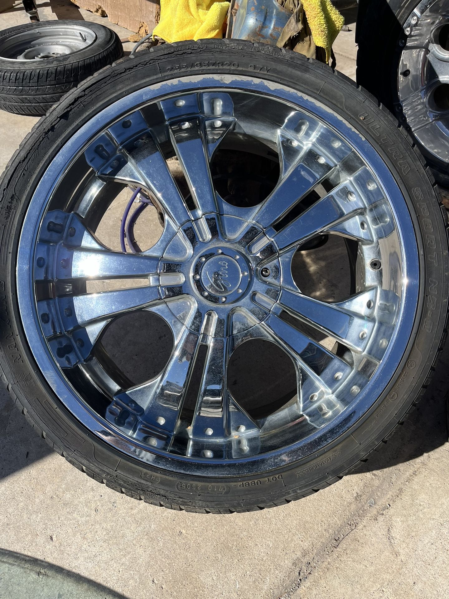 Nice 20 inches rims tires are no good do have all 4 caps and rims $300