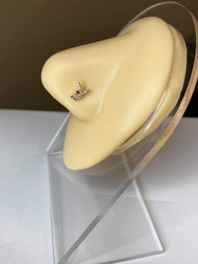 Gold Playboy nose stud... available in gold and silver ...I won’t sell the one in display but I will give you a brand new one in individual packs $8 each check my page for more .. I can deliver.. located in Bakersfield