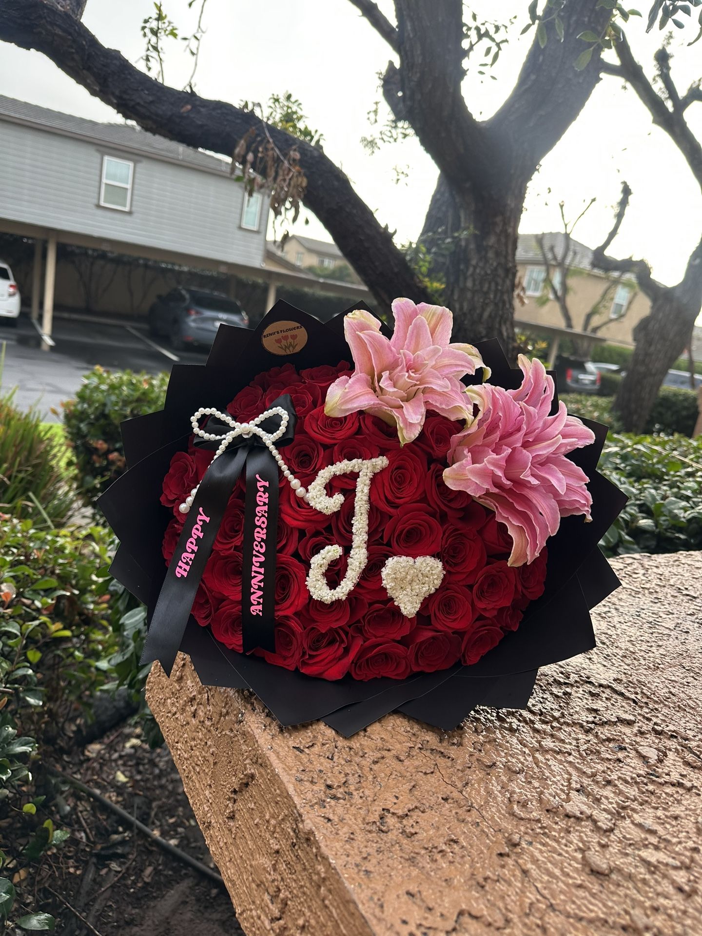 50 red roses with lilies 🌹✨