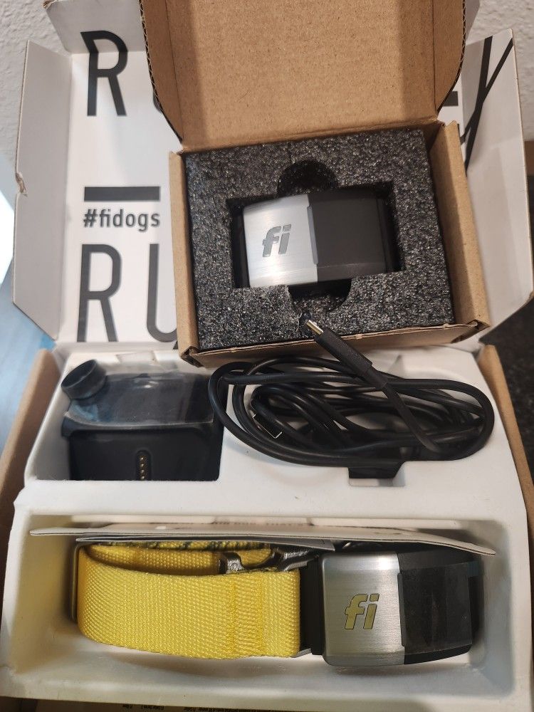 New, open box. Model FC 2B with charging base station, and new extra Fi Device. Collar is medium 12.5" - 16.5" excl metal buckle. Requires mobile app download and membership subscription.