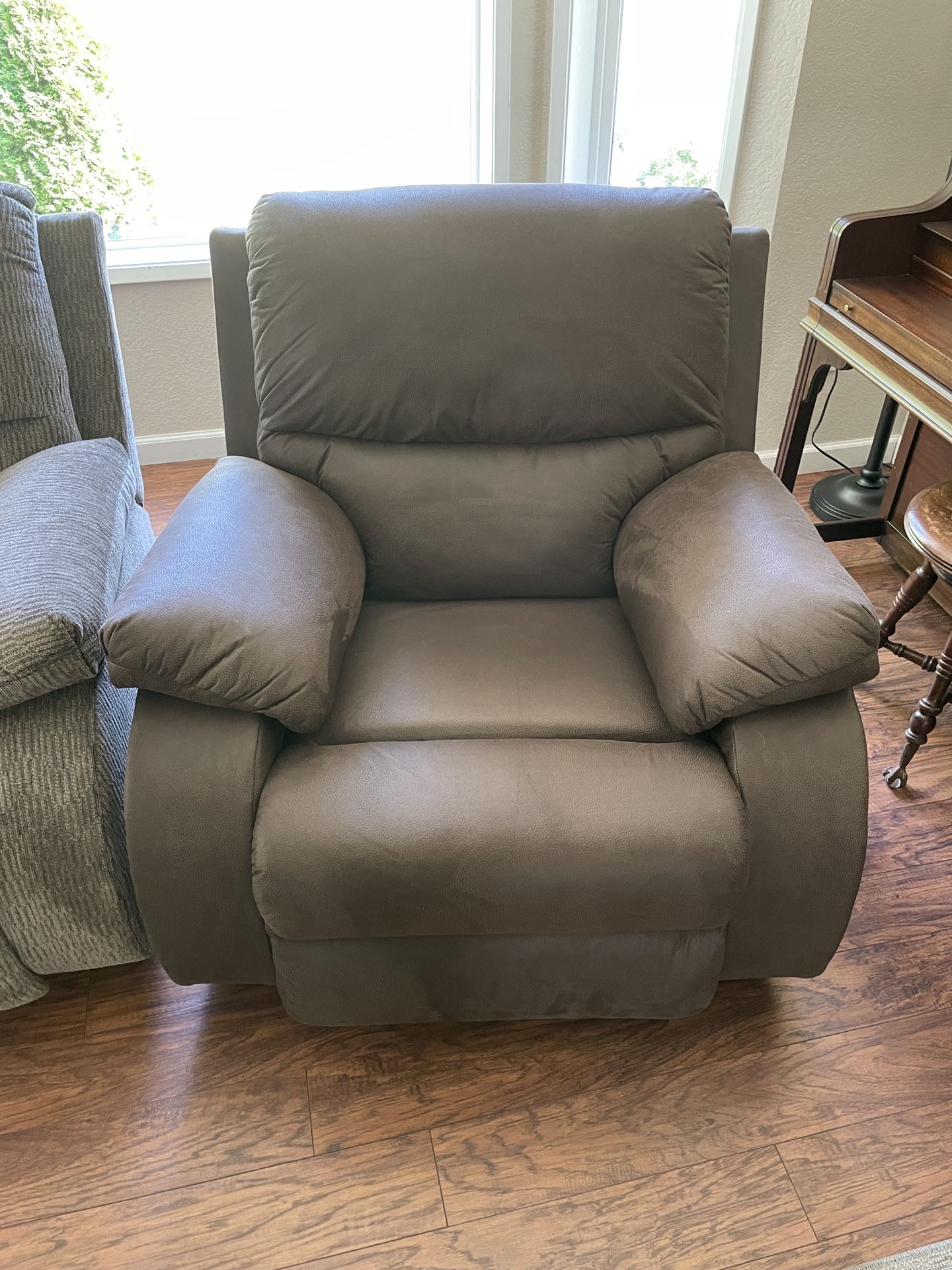 Brown recliner. I just bought it but now I have to move. Need gone asap. I have two but they are different colors (see my other post). I’ll make you a screaming good deal if you want both. Thanks!