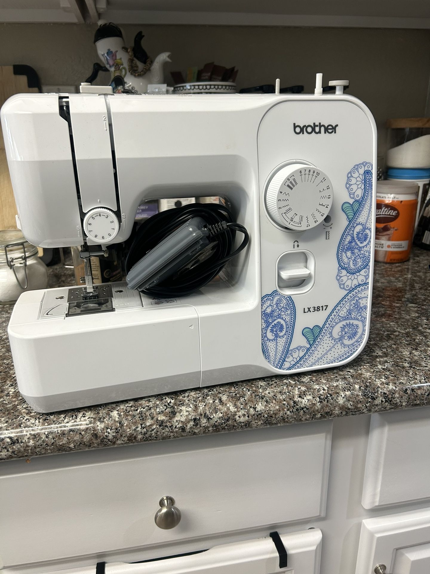 Brother RLX3817 17 stitch sewing machine for sale. Perfect condition with all attachments and accessories in box.