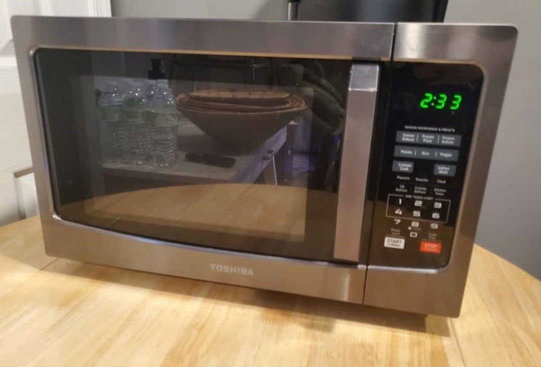 TOSHIBA EM131A5C-SS Countertop Microwave Ovens 1.2 Cu Ft with 12.4" Removable Turntable Smart Humidity Sensor, 12 Auto Menus Mute Function ECO Mode Easy Clean Interior, 1000W, Silver. $60 OBO