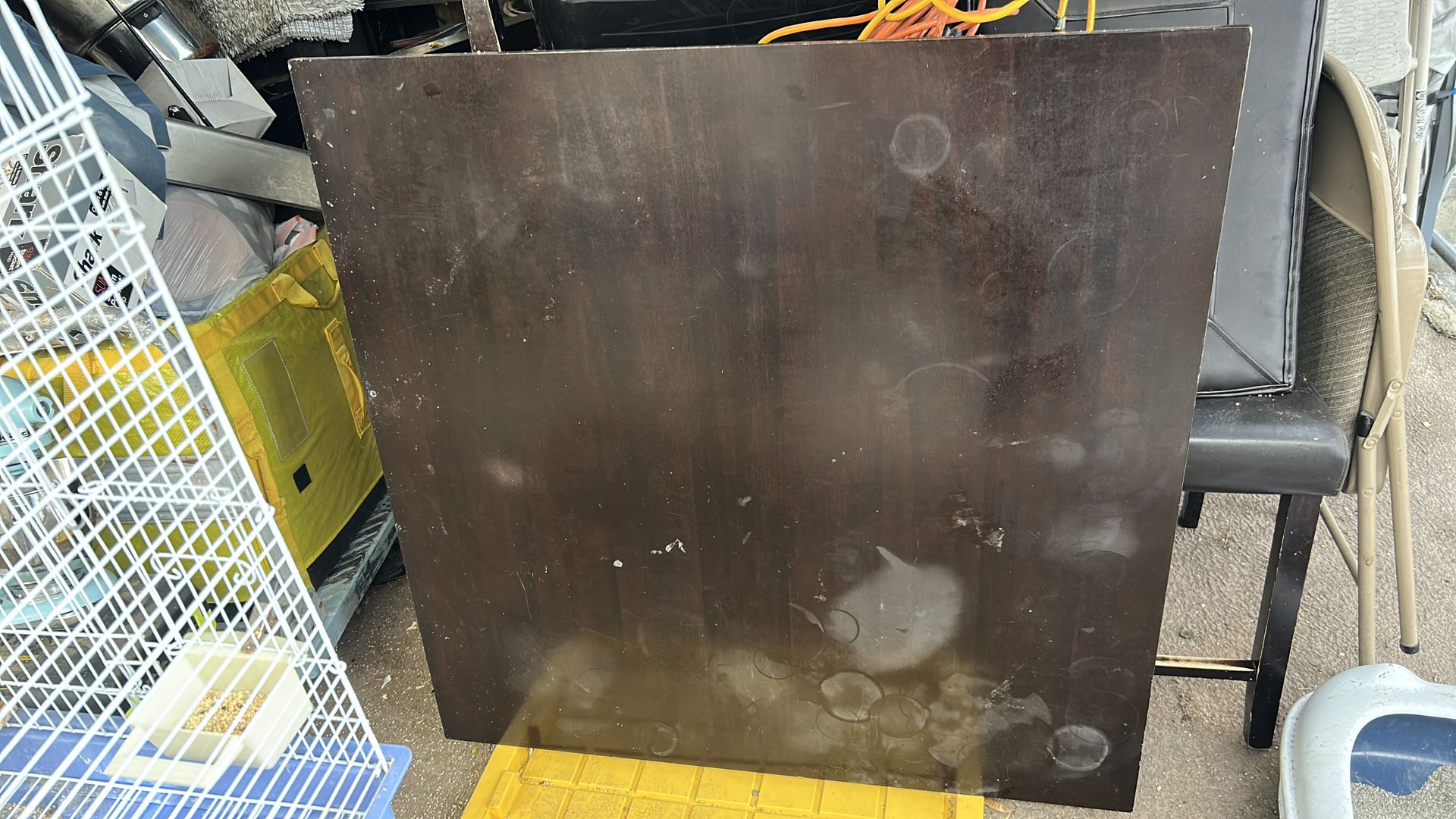 La mesa está un poco maltratada pero en buen estado la sillas está buenas