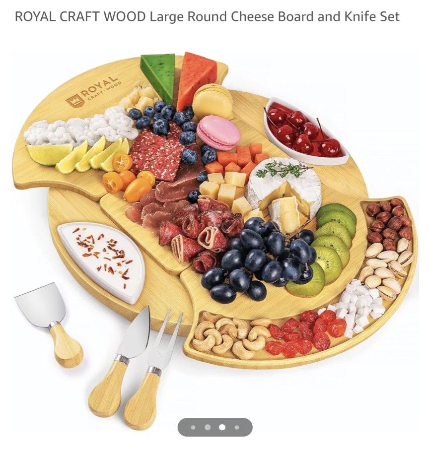 Large Round Cheese Board & Knife Set- New.