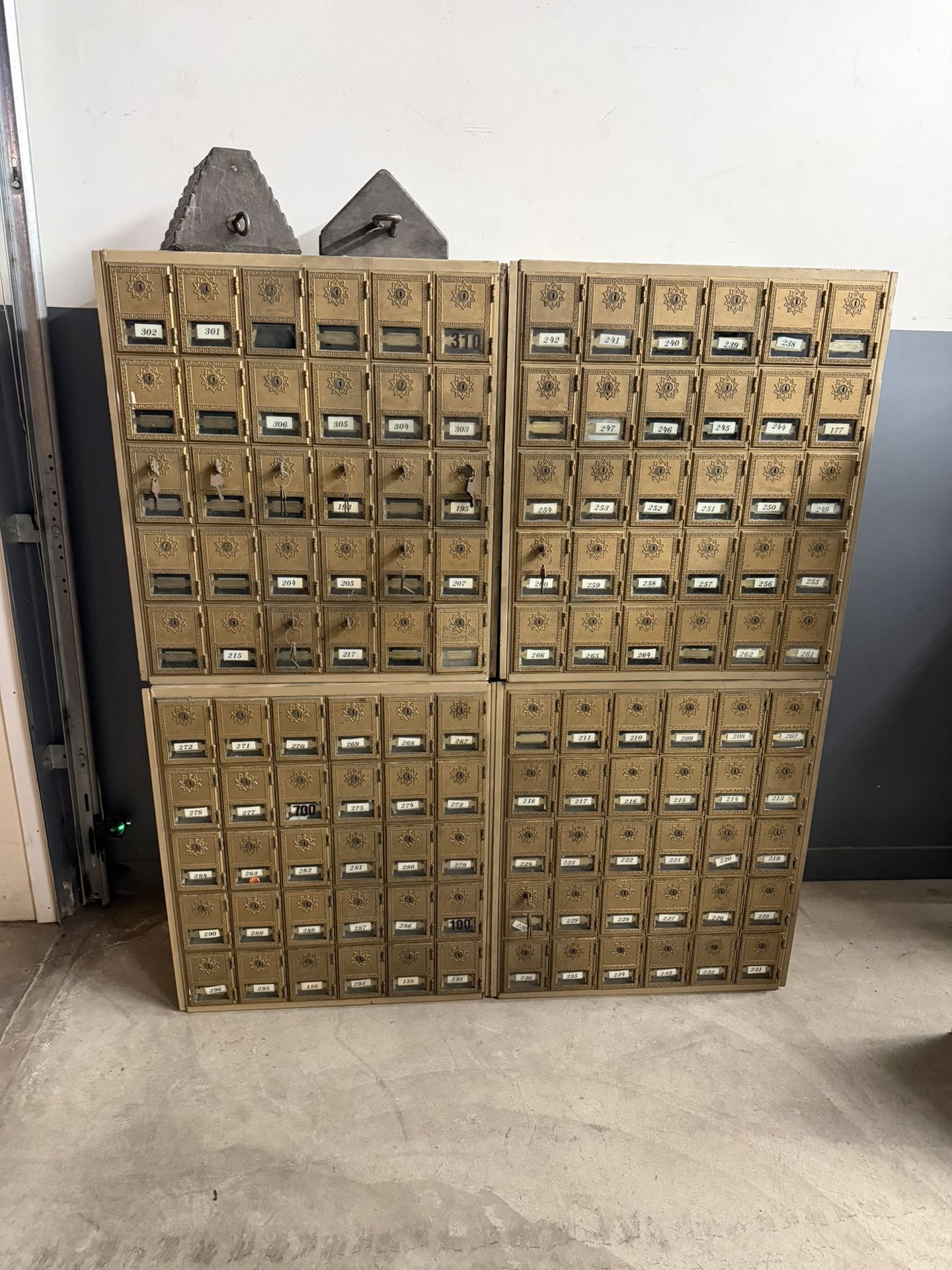 Salsbury P.O. Boxes for sale. Taken out of a store a week ago. Locking mechanisms still function. Have about 75% of the keys. 210 4x3”(approximate) boxes, 44 5x4 “ (approximate), 2 5x8” (approximate )
