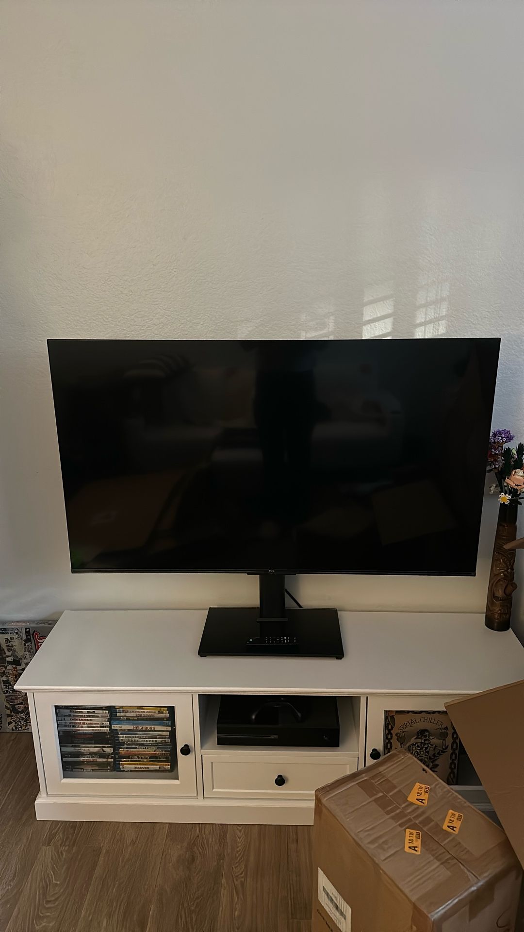 TCL 50-Inch Class S4 4K LED Smart TV with Fire TV (50S450F, 2023 Model), Dolby Vision HDR, Dolby Atmos, Alexa Built-in, Apple Airplay Compatibility, Streaming UHD Television, Black Greenstell TV Stand with Power Outlet, Universal TV Mount Stand for 27-65 inch TVs, Height Adjustable, Swivel Table Top TV Stand with Tempered Glass Base, Holds up to 88 LBs, Max VESA 400x400mm BOTH ITEMS WERE BOUGHT SEPARATE BUT WILL BE SOLD TOGETHER