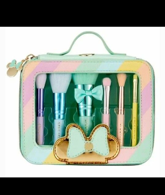 NEW WITH TAGS DISNEY X SPECTRUM MINNIE MINIS 6 PIECE TRAVEL BRUSH SET & BAG