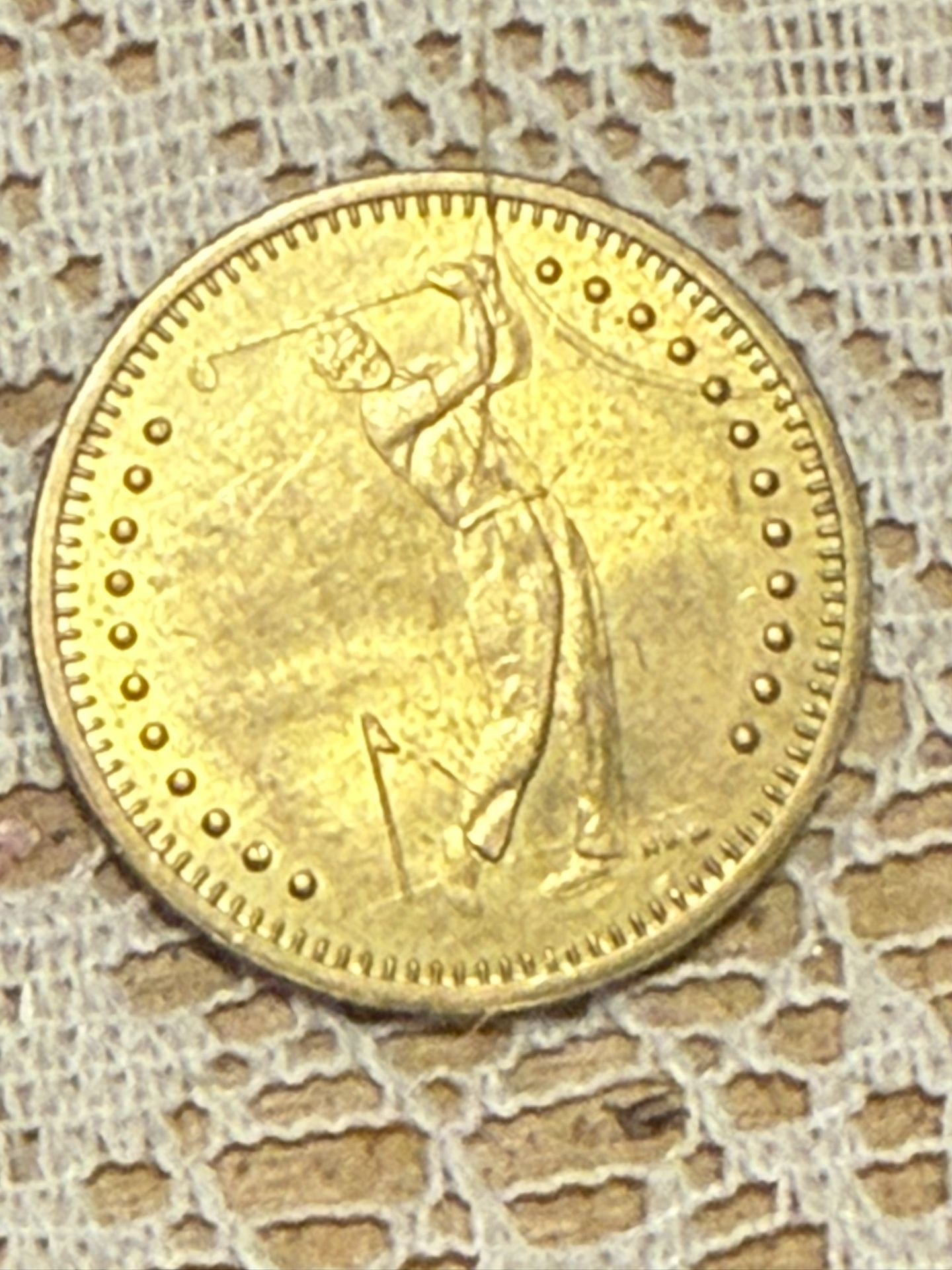 Rare vintage Ball-O-Matic golf token from Niles, MI. Features a golfer design on one side and ‘Ball-O-Matic’ branding on the other. Perfect for collectors or golf enthusiasts!”