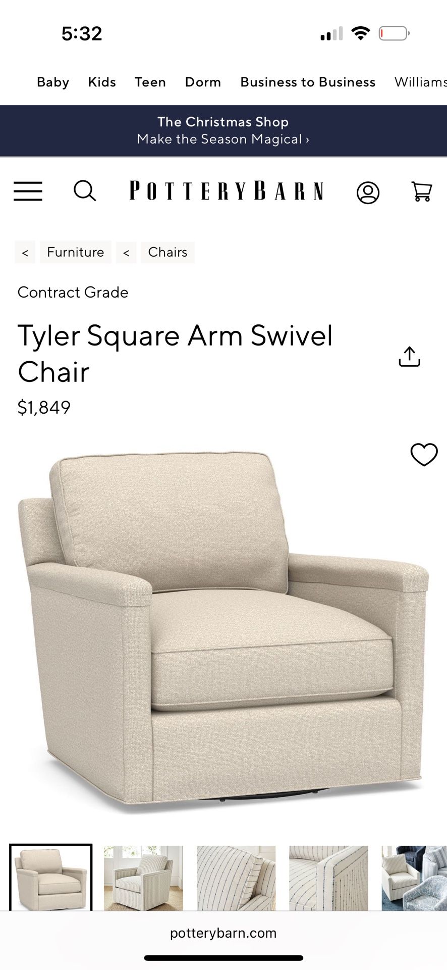 Selling this beautiful accent swivel accent chair from pottery barn. I purchased it for my office but it’s too big. It is in brand new condition and paid over $2300. Similar to Restoration Hardware, Crate and Barrel, Four Hands, CB2, Arhaus.