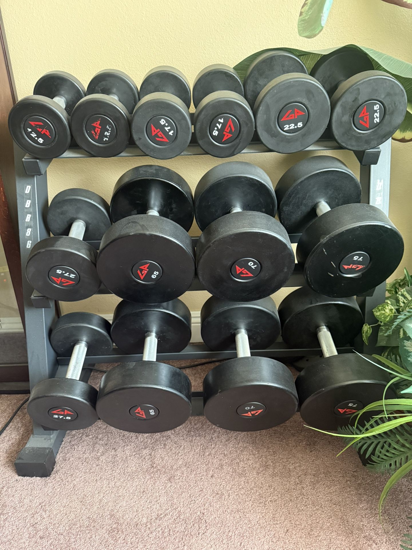 Urethane GP brand Commercial gym grade 12.5lbs x 2 17.5lbs x 2 22.5lbs x 2 27.5lbs x 2 65lbs x 2 70 lbs x 2 75lbs x 2 Pick up only