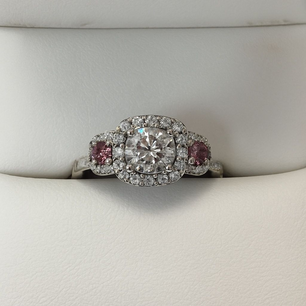 Limited Edition Jenny Peckham Diamond Engagement Ring, in Platinum, Excellent Condition. Size 7, Brilliant/ Full Cut, 2 Round Pink Diamonds with 76 Total Round Diamonds, GCAL Certified with Certificate. Beautiful Ring, paid over 4k new from Helzberg Diamond. Asking $1500