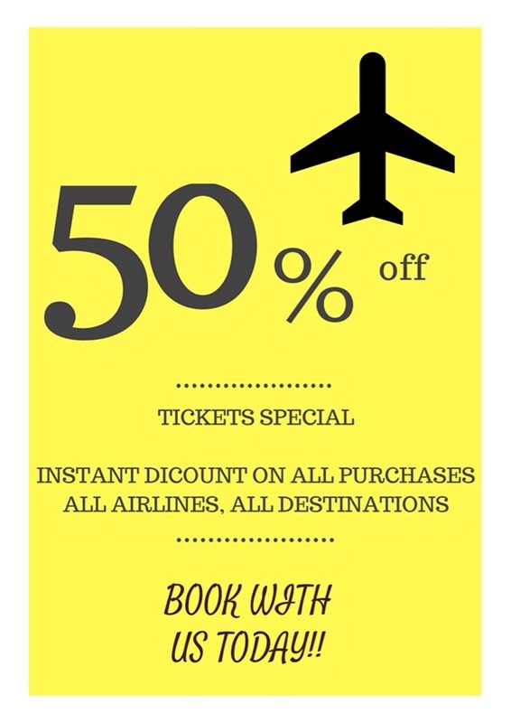 50% OFF AIRLINE TICKETS