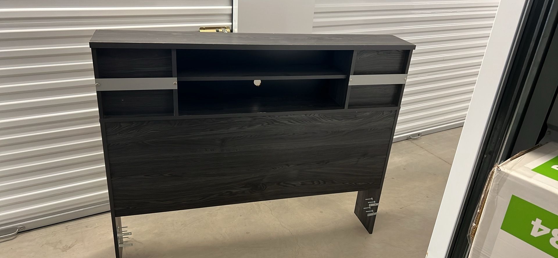 3 year old head board for full sized mattress. Has some scuffs, does not come with a bed frame. Must be able to pick up