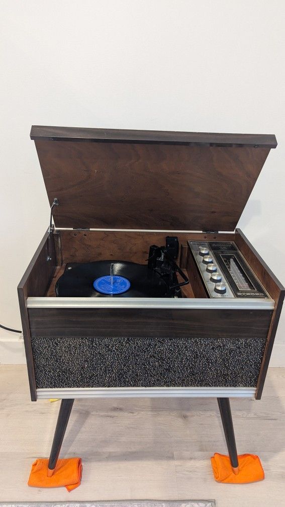 Delmonico Console Stereo 1963 Brand: Delmonico Product Code: 23S-222 Classic retro style piece in great working condition. Sounds great still. Record player is working fine. Radio tuner is still good.