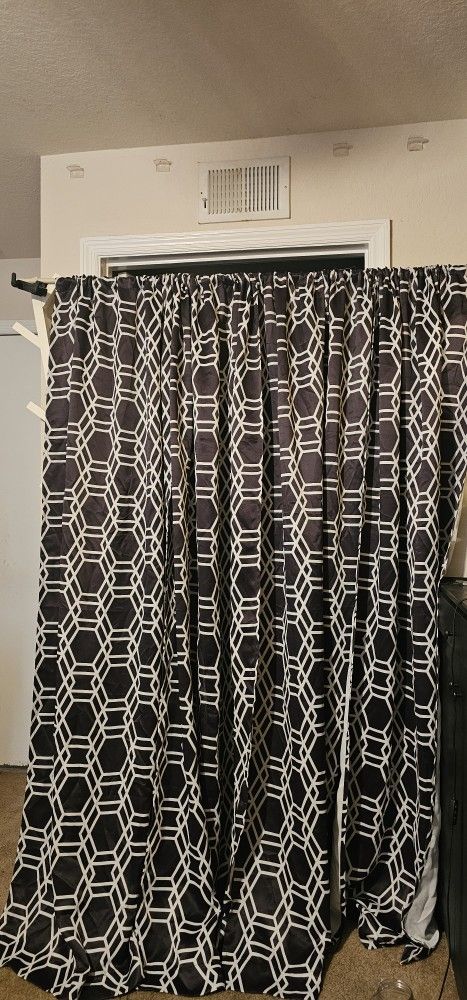 Brand: ECLIPSE Color: Brown & White Material: Polyester Qty: 4x panels and dimensions: for each panel are 84"L x 37" Opacity: Light-filtering