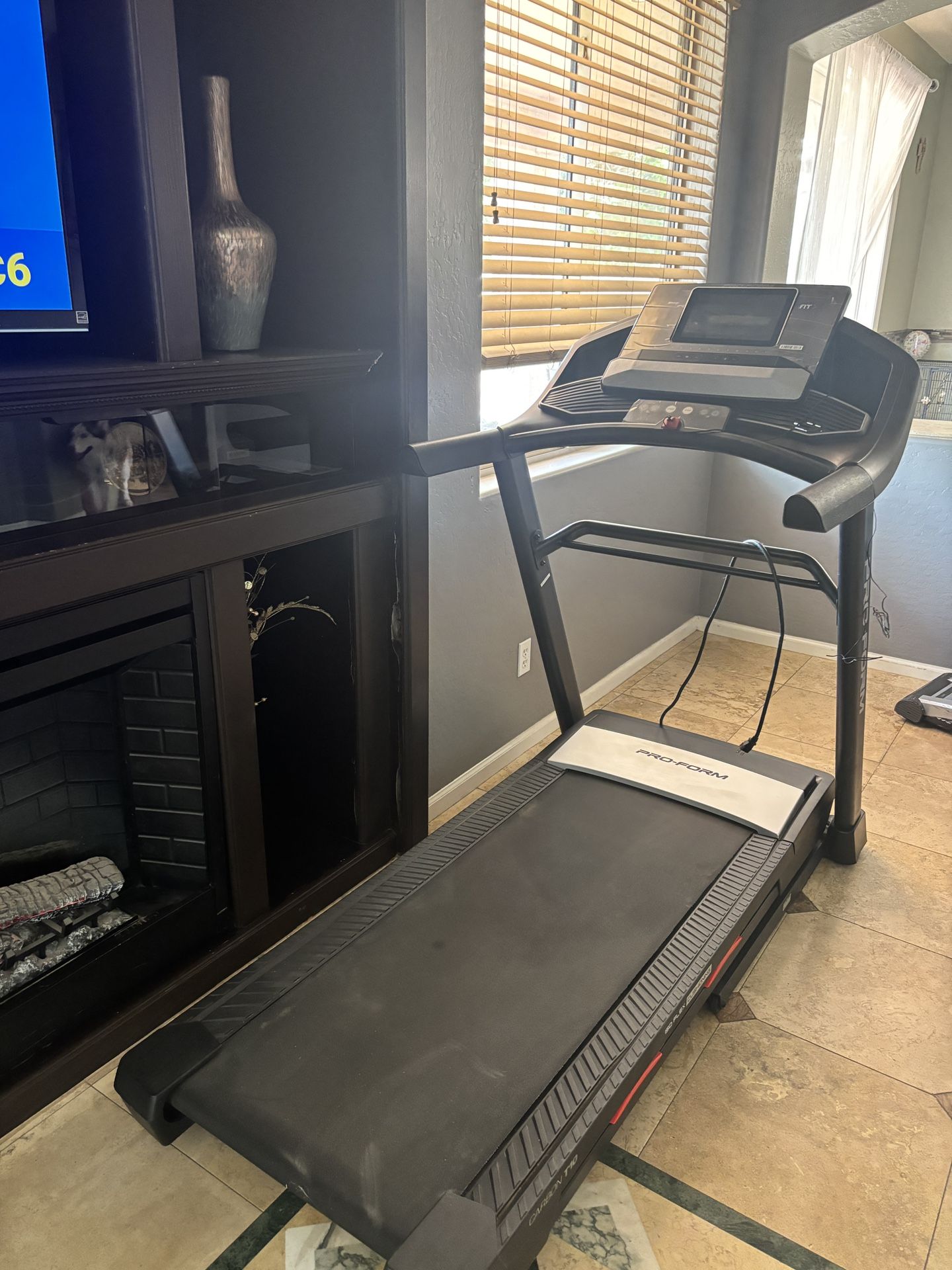 ProForm Carbon T10 smart treadmill. Folding treadmill with a sturdy frame. Bluetooth connectivity. Quiet treadmill that offers up to 12% incline. The T10 features speakers and an audio auxiliary port so you can plug in your device and enjoy your top workout playlists.