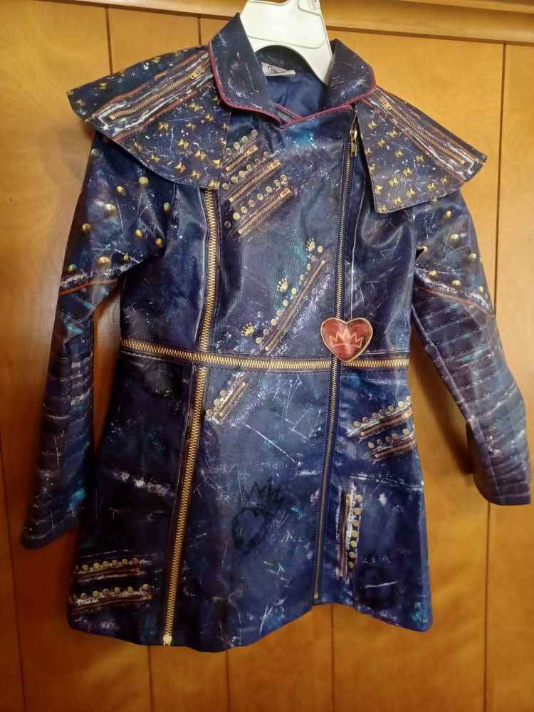 Authentic Disney Store Descendants 2 Evie costume 2 piece INCLUDES: Faux Leather jacket and leggin Size 9-10. Disfraz de Evie en excelente estado prácticamente nuevo, imitación piel, fue comprado en la tienda Disney, el set incluye jacket y leggin. Talla 9-10, también lo puede usar una niña más pequeña con unos leggin negros o púrpura es sólo cómo sugerencia.