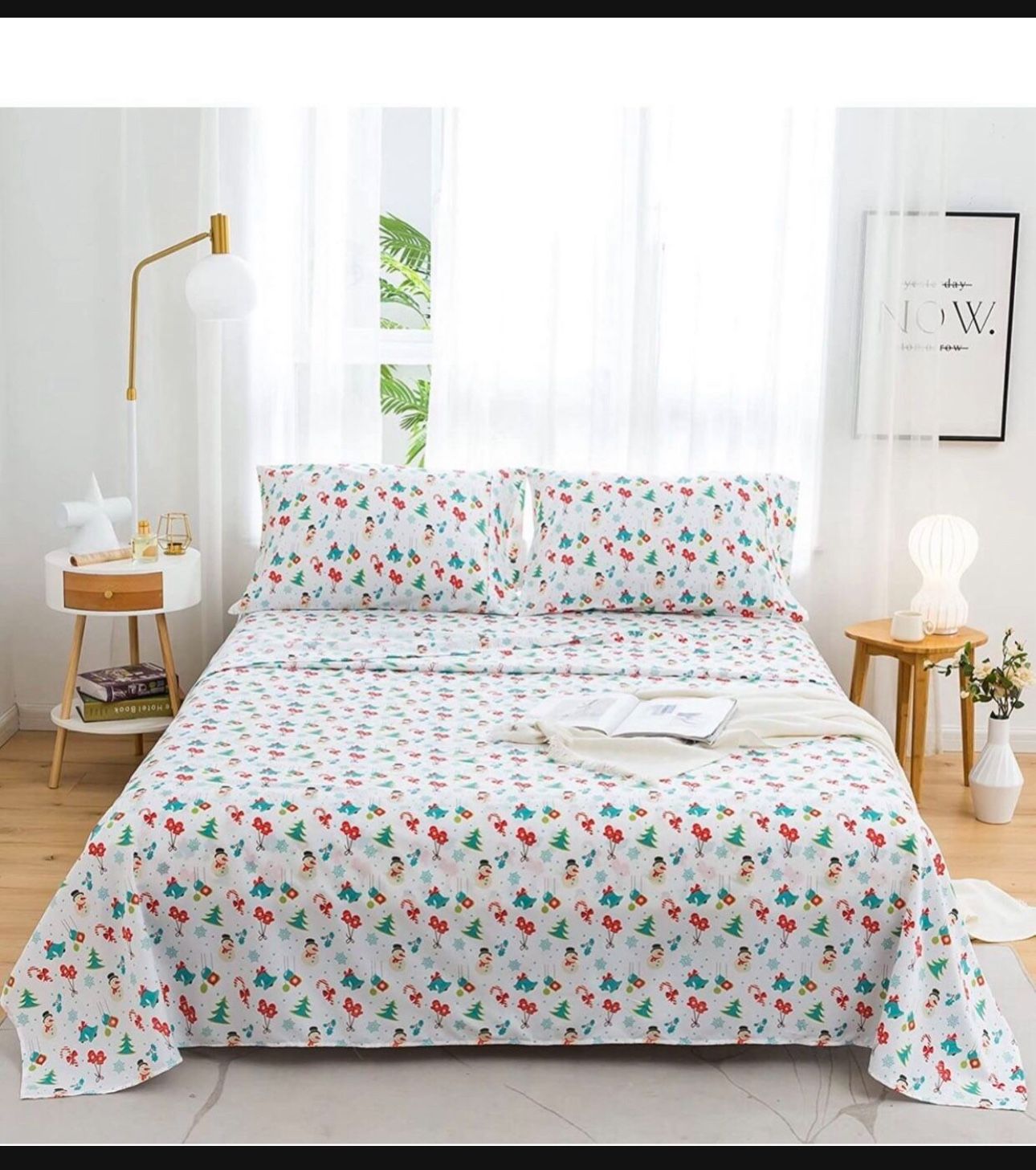 QueenBed Sheet Set 3PC Printed Christmas Tree Pattern Cooling 1800 Microfiber with Deep Pocket, Hotel Luxury, Soft, Breathable, Hypoallergenic, Wrink