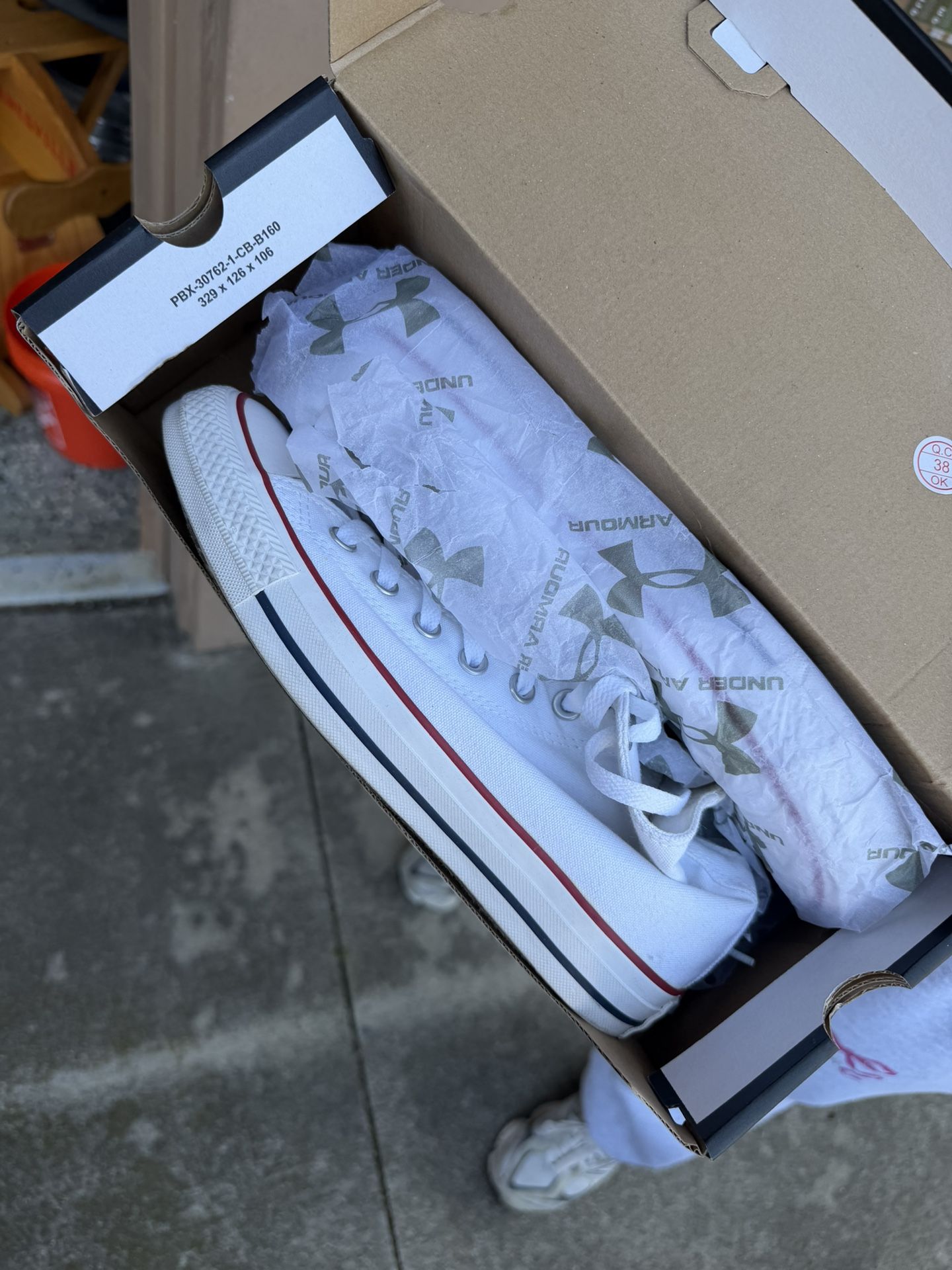 9.5w 7.5m Never worn. Have been sitting in my garage. Very slightly dusty.
