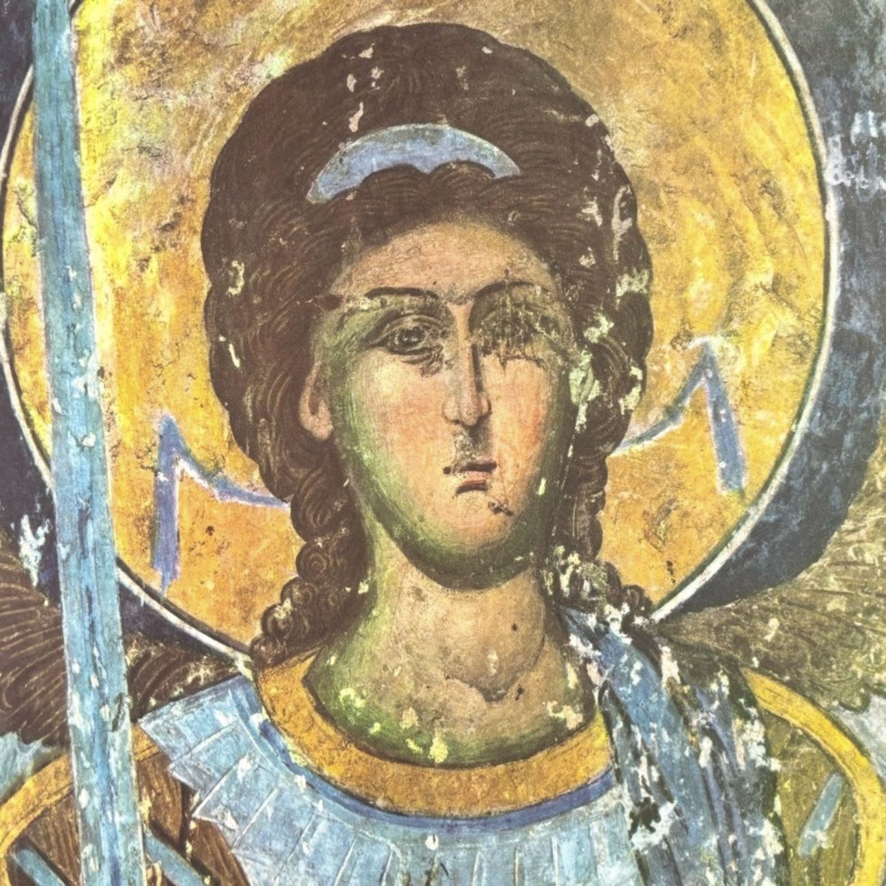 Original Vintage Fine Art Print Poster Medieval Yugoslavia Wall Frescoes Antique Painting Artist Printed Italy 1960’s. Kalenic. Archangel Michael
