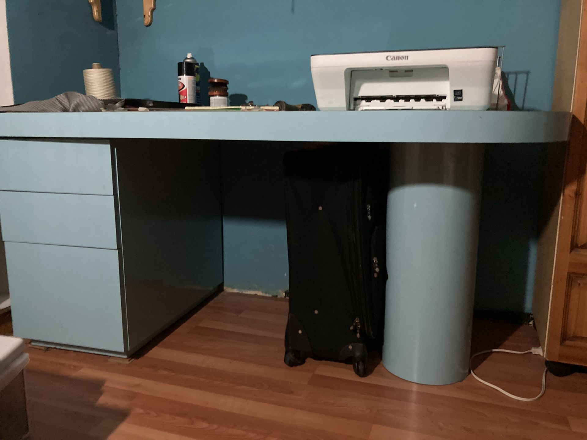 Desk and filing cabinet