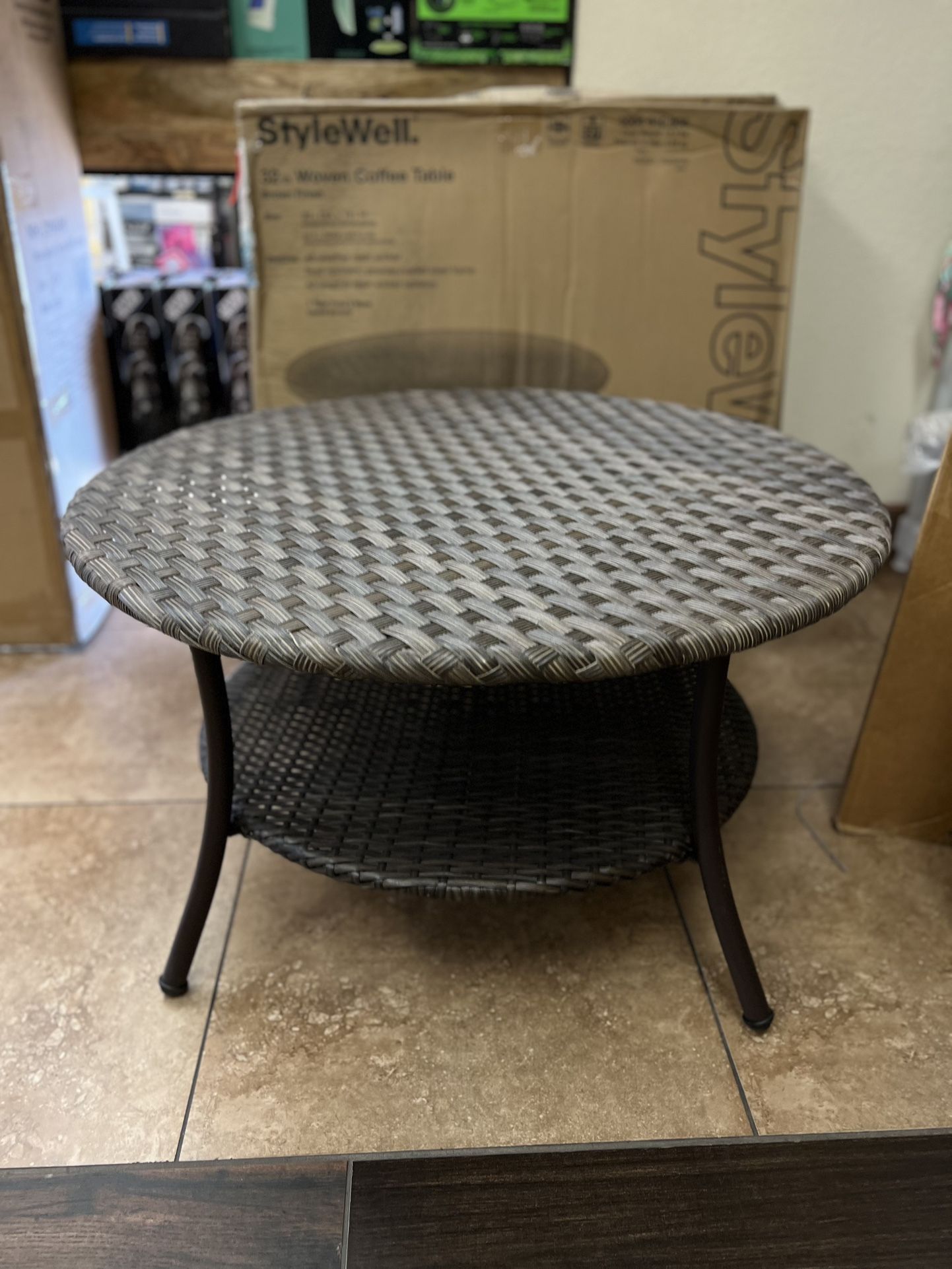 Retail $99 Our price $70 each! Brand new 5 available! StyleWell 32 in. Mix and Match Brown Round Wicker Outdoor Patio Coffee Table With Woven Table Top