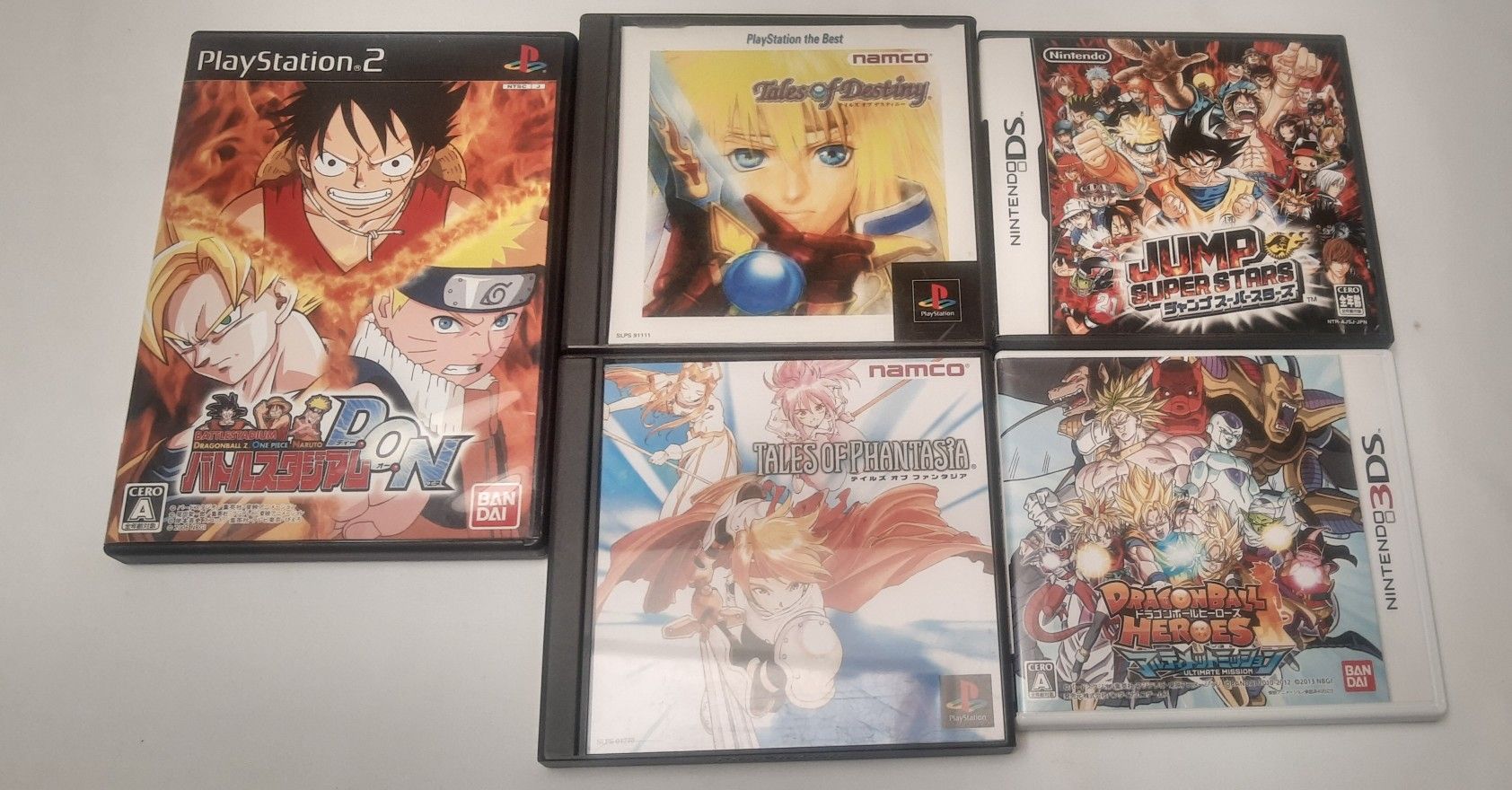 YES IT'S AVAILABLE! ππ Selling as a bundle $50 for all 5. For offer are 5 Japanese variant games: Battle stadium DBZ, One piece, Naruto Tales of Destiny Tales of Phantasia Jump Superstars Dragonball Heroes All games are complete and appear to be in good condition, but were not actually tested because we do not have Japanese systems to test. Everything is stored in a clean, smoke free, dust free, pet free, temperature controlled environment until purchased. Please check out my other listings for other videogames, gaming related items and knickknacks. Preferred pick up in Sunnyvale. Thanks for looking and happy hunting! #Nintendo #Playstation #ds #3ds #videogames #video games #gamer #games #retro #retrogames