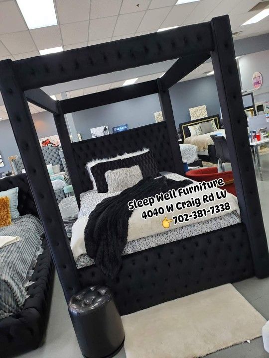 Modern style queen Canopy bed frame 👉👉$798 👉NOW! (Originally $900) Available King Grey, black or ivory white 🙋‍♂️👉SLEEP WELL FURNITURE 4040 W CRAIG RD LAS VEGAS Open 10-7pm Hablamos Español 👉We offer Financing💲 Take home it Home 👉$50 DOWN No credit required, Zero interest up to 120 days Select from Koalofi, Acima, Kornerstone, Kafene finance. Furniture Sectional Sofa Queen King Mattress Bedroom Bunk beds Dining table sets 702-287-1684 Jimmy
